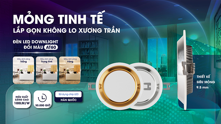 Đây chính là lợi thế vượt trội cho những công trình cải tạo, nhà ở dân dụng, căn hộ chung cư – nơi mỗi milimet chiều cao đều ảnh hưởng trực tiếp đến không gian tổng thể và cảm giác thoáng đãng của căn phòng. Dù trần nhà có hạn chế về không gian thi công, đèn LED downlight AT60 vẫn là lựa chọn hoàn hảo giúp tiết kiệm thời gian, công sức lắp đặt và chi phí nhân công mà vẫn đảm bảo thẩm mỹ cao.