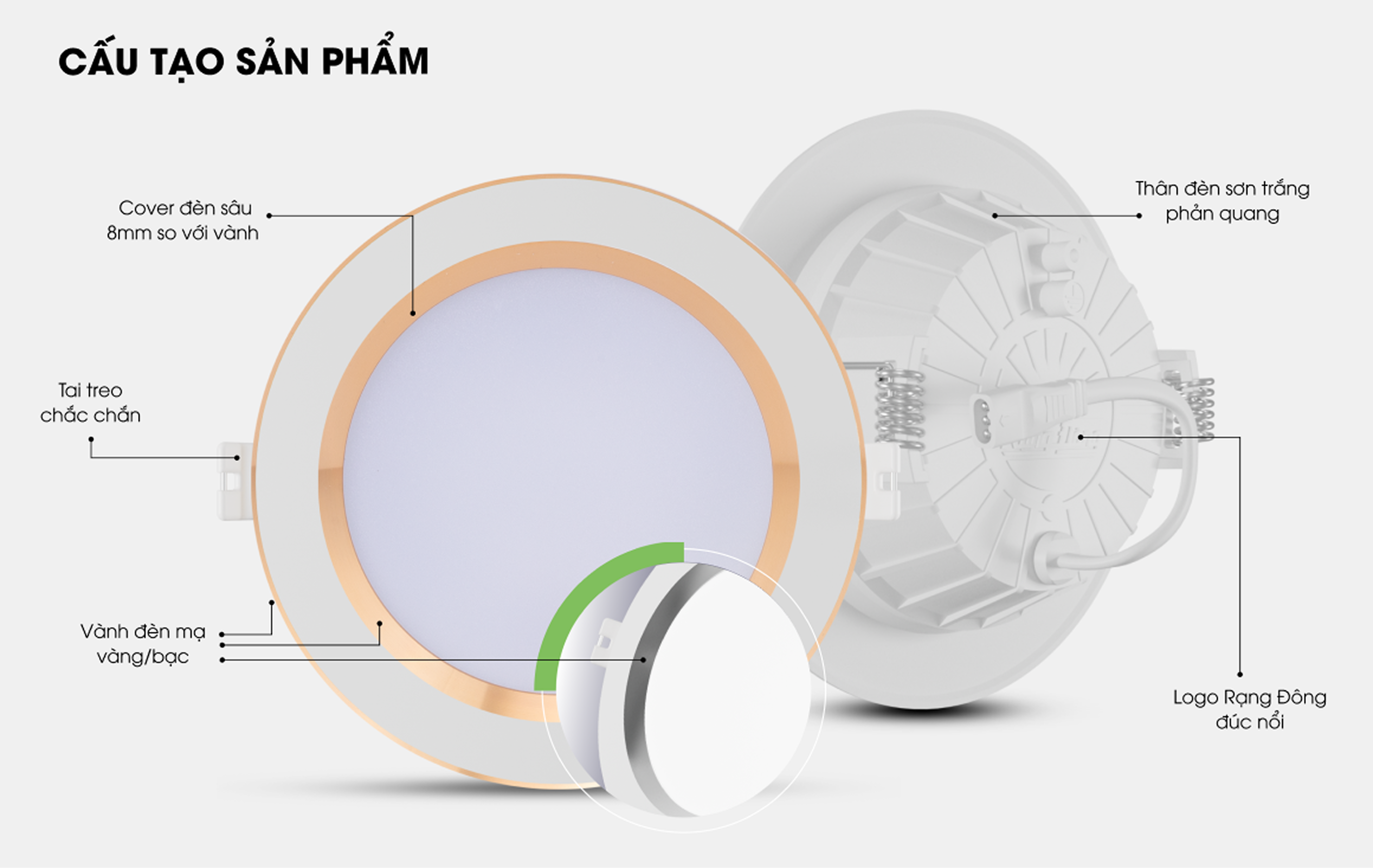 • Đổi 3 màu ánh sáng Trắng/Vàng/Trung tính, đáp ứng đa dạng nhu cầu sử dụng.